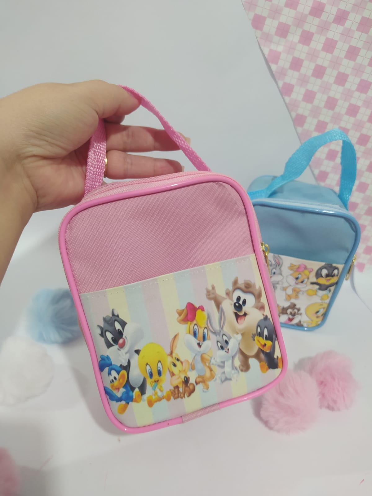 Apresentamos a Bolsa com bolso frontal, um acessório encantador que combina estilo e diversão para o seu dia a dia. Com um design vibrante e colorido, essa bolsa é adornada com os personagens icônicos da série, como Piu-Piu, Pernalonga e outros, podendo também ser personalizada de acordo com o tema de sua festa, tornando-a perfeita para as crianças e também para os adultos que adoram nostalgia.